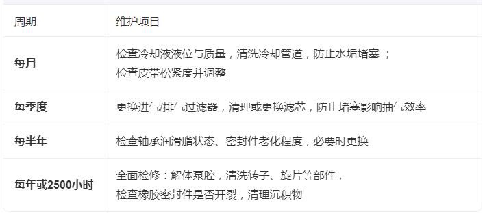 禁止混用润滑油:须使用厂家推荐的真空泵专用油,避免油品不兼容导致乳化或失效。